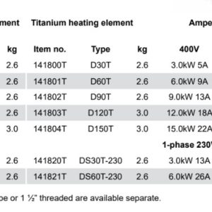 • Bộ phận làm nóng bằng Incoloy 825 hoặc titan.